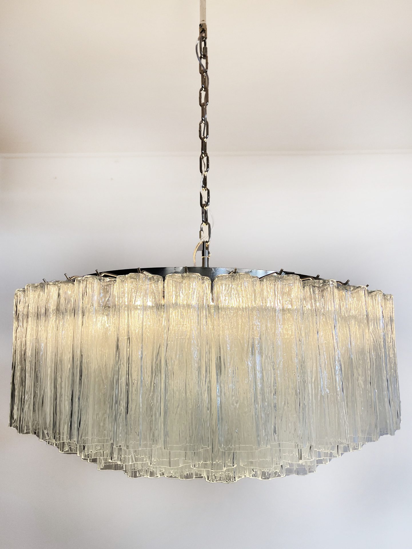 Mål: 122 cm høyde med kjede (kan forkortes og forlenges) 48 cm høyde uten kjede, 82 cm i diameter.