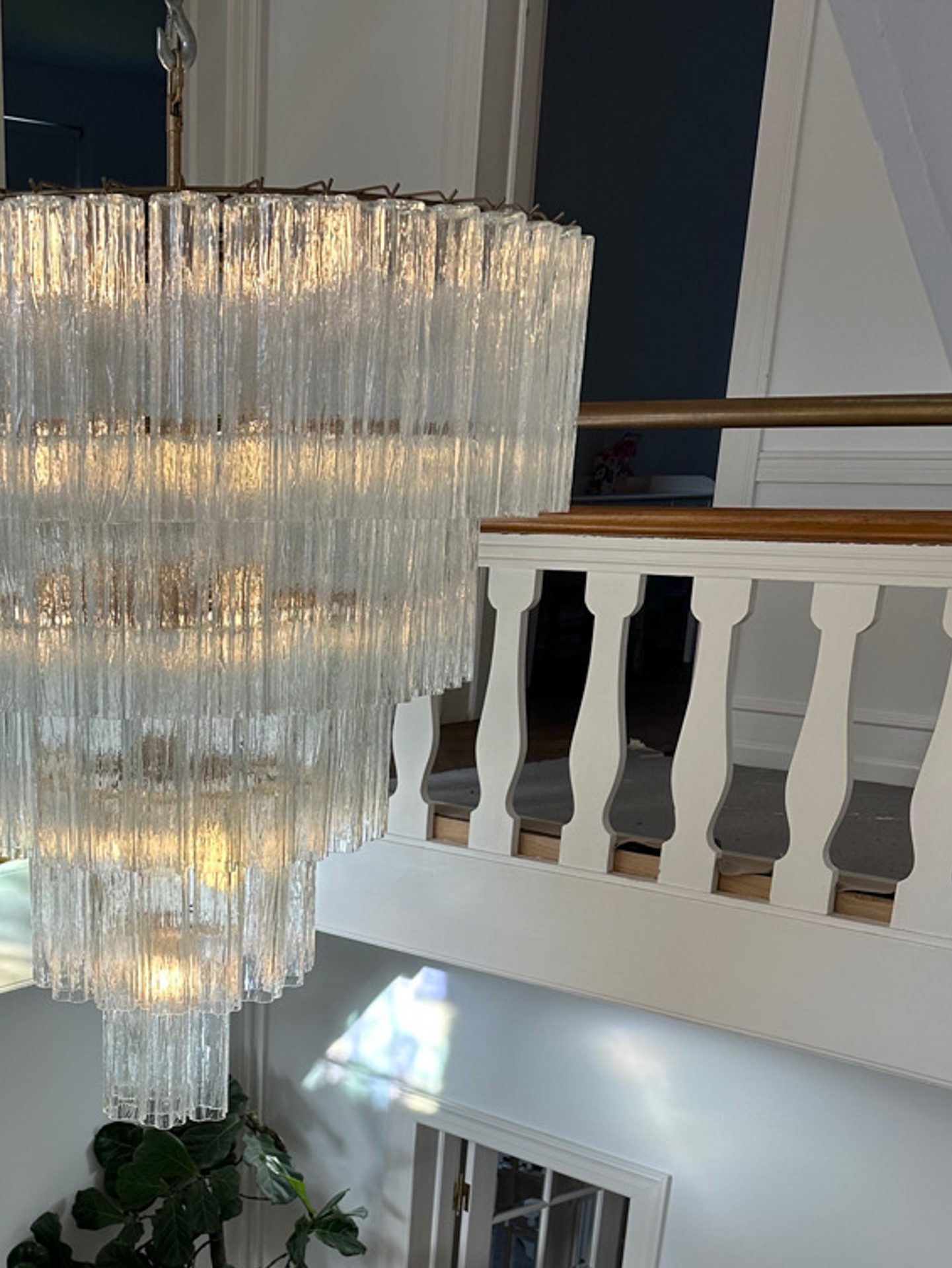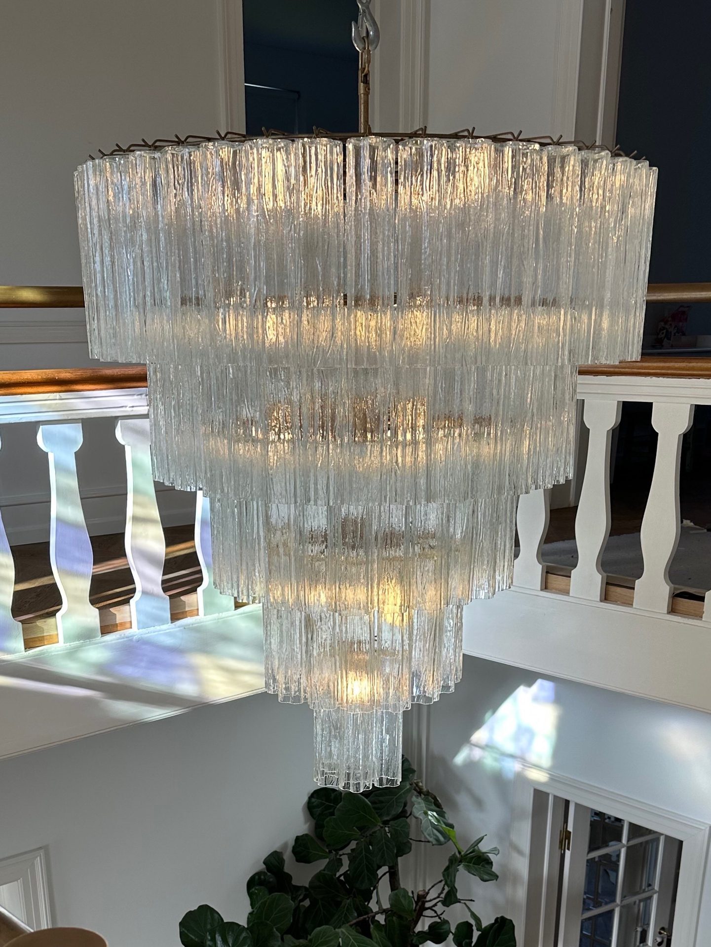 Oppdag elegansen til vår Murano-lysekrone med 5 nivåer, med 119 håndlagde gjennomsiktige glassrør. Et fantastisk midtpunkt som kombinerer utsøkt håndverk med moderne design, og gir en lysende og sofistikert atmosfære til ethvert rom. Perfekt for å løfte interiøret ditt med luksus og kunstnerisk utforming.