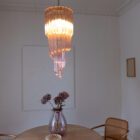 Løft rommet ditt med den fortryllende sjarmen til vår Murano lysekrone. Dette mesterverket er utsmykket med 54 delikate rosa Murano krystallprismer som dingler grasiøst i en elegant forkromet metallramme og skaper en fantastisk spiralform.